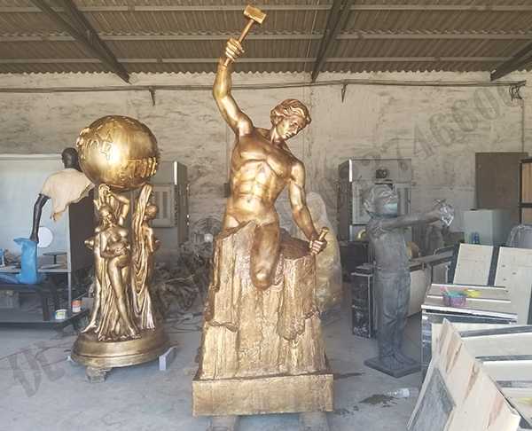 優(yōu)藝雕塑制作的銅自我雕刻雕塑體現(xiàn)的就是這樣的一種人生寓意,手持鐵錘,剔除掉自身